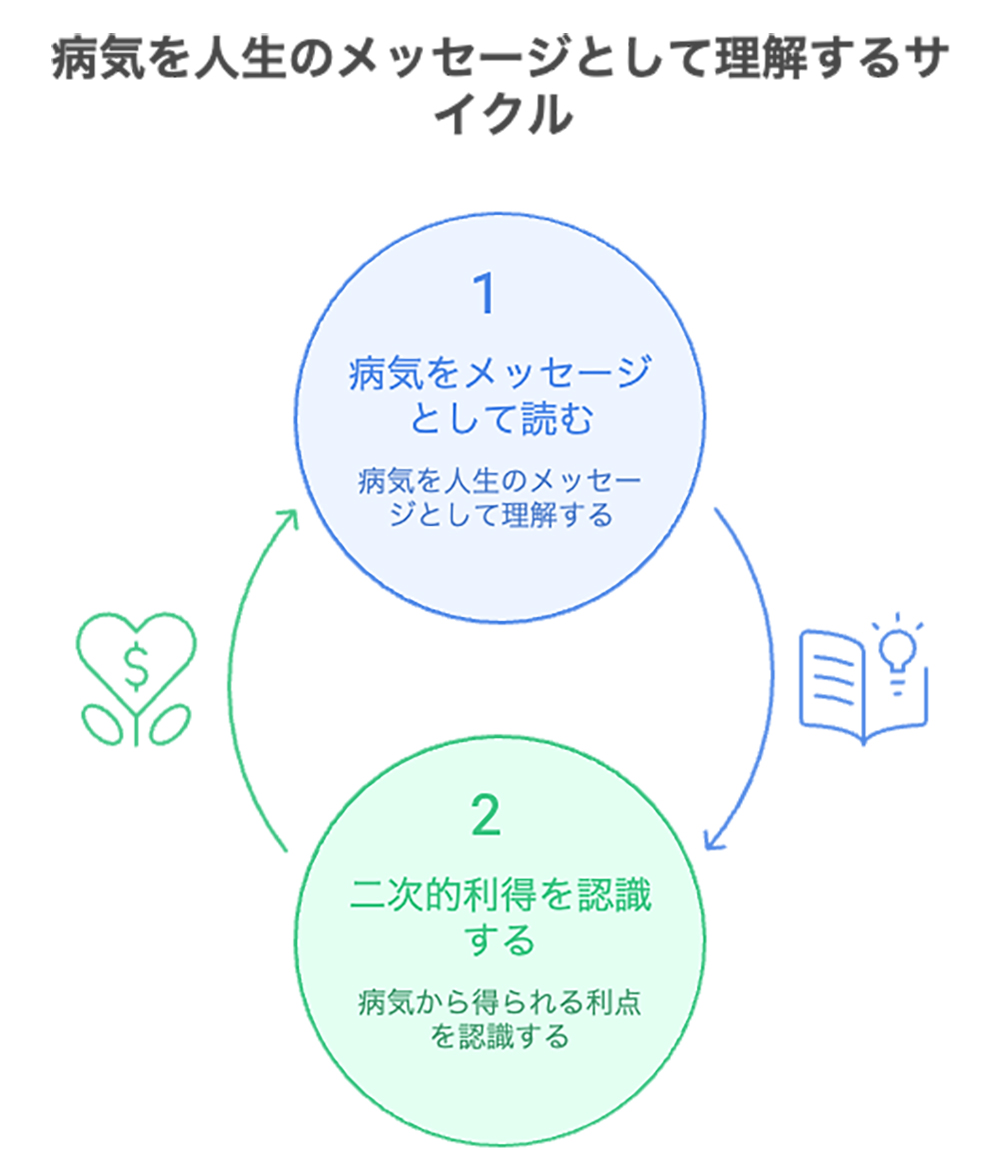 彼は、**「病気は敵ではなく、あなたの生き方が限界に来ていることを知らせるメッセージである」**と捉えます。