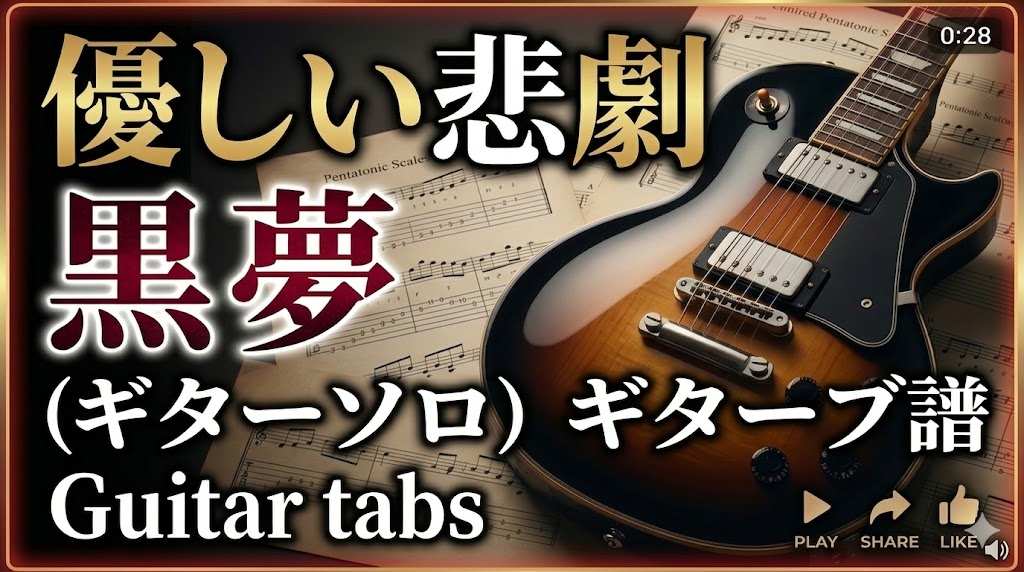 ここでは「優しい悲劇」のギターソロ部分だけのタブ譜になります。
