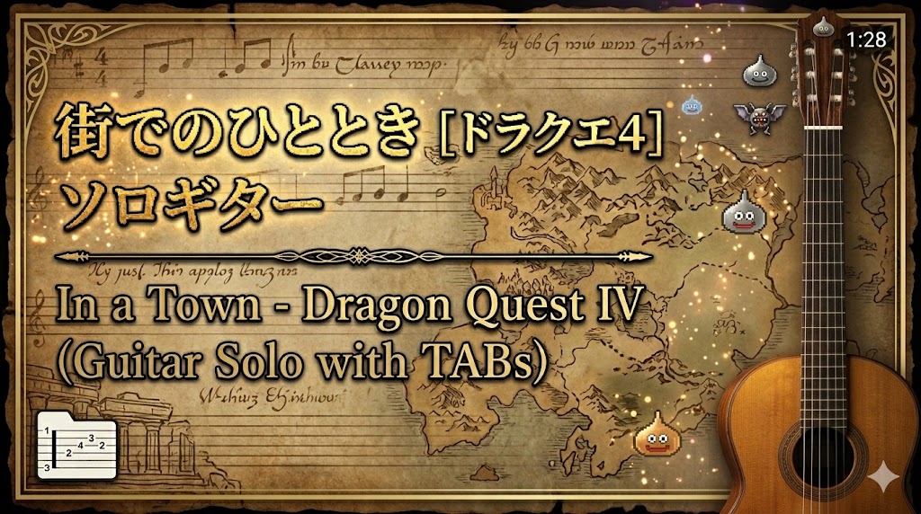 [ドラクエ4] ソロギター / In a Town – Dragon Quest IV (Guitar Solo with TABs) #すぎやまこういち #ドラゴンクエスト4