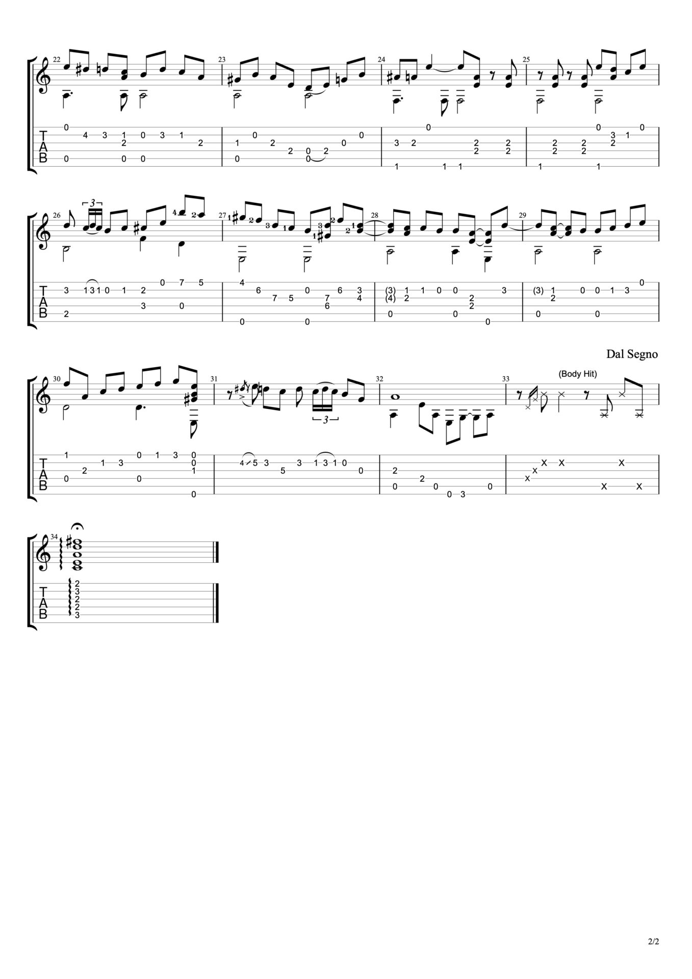 それを少しアレンジを施し微調整などを繰り返したのが、こちらに添付されているギタータブ譜になります。