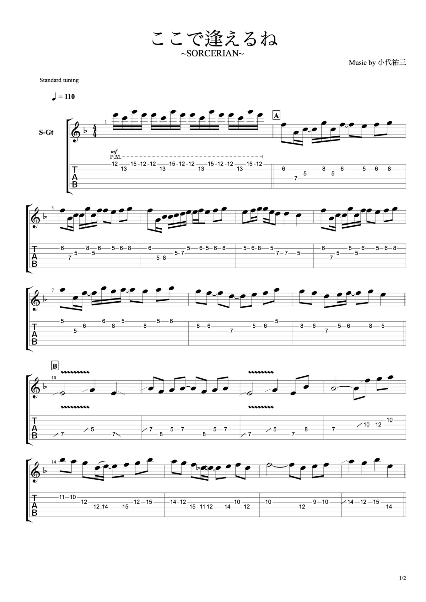ソーサリアン ギタータブ譜 (SORCERIAN Guitar Tab)